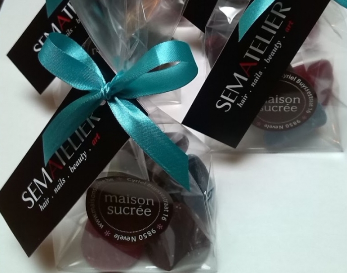 Doosje Pralines 250 gr. : 12 € - Doosje pralines 500 gr. : 24 € - Doos pralines 1 kg : 48 €.