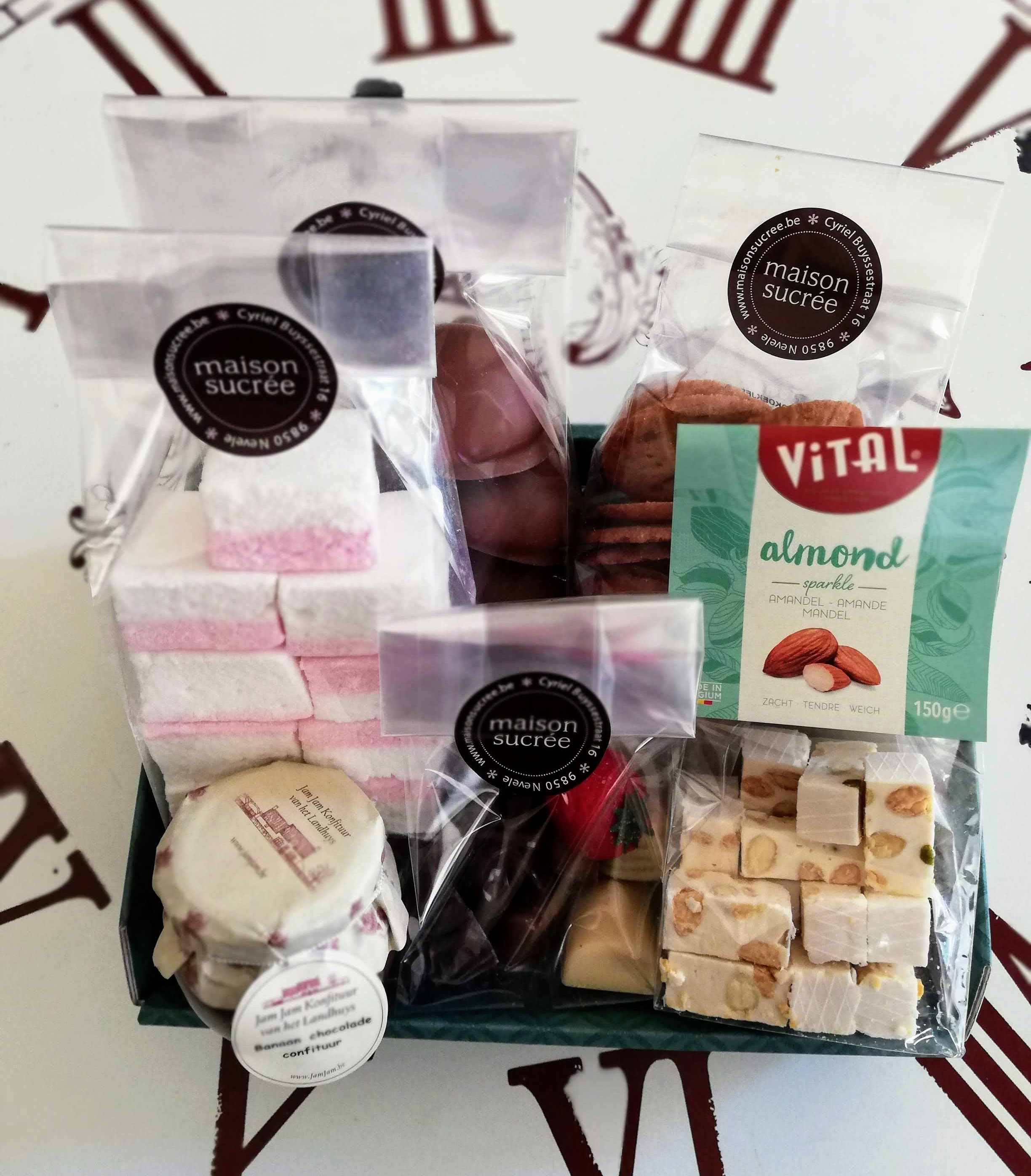 ambachtelijke chocoladezoenen,ambachtelijke koekjes, nougat (Vital), tricolor, pralines, pâtes de fruits : 36,20 €